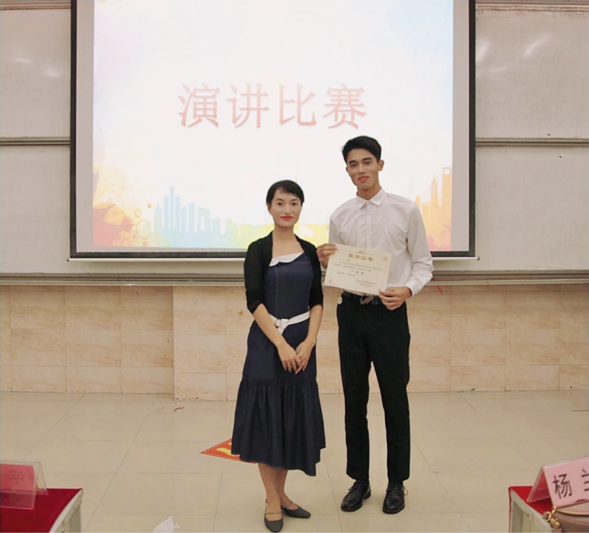 杨兰辅导员为张涛颁发一等奖荣誉证书